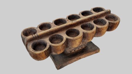 The wooden object has ‘baked lighting’ which means the light effect is part of the surface texture.