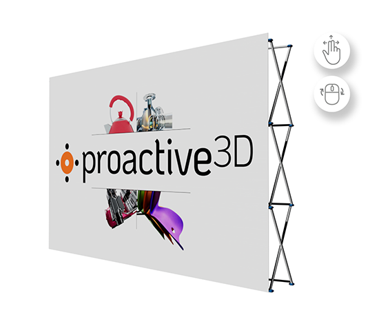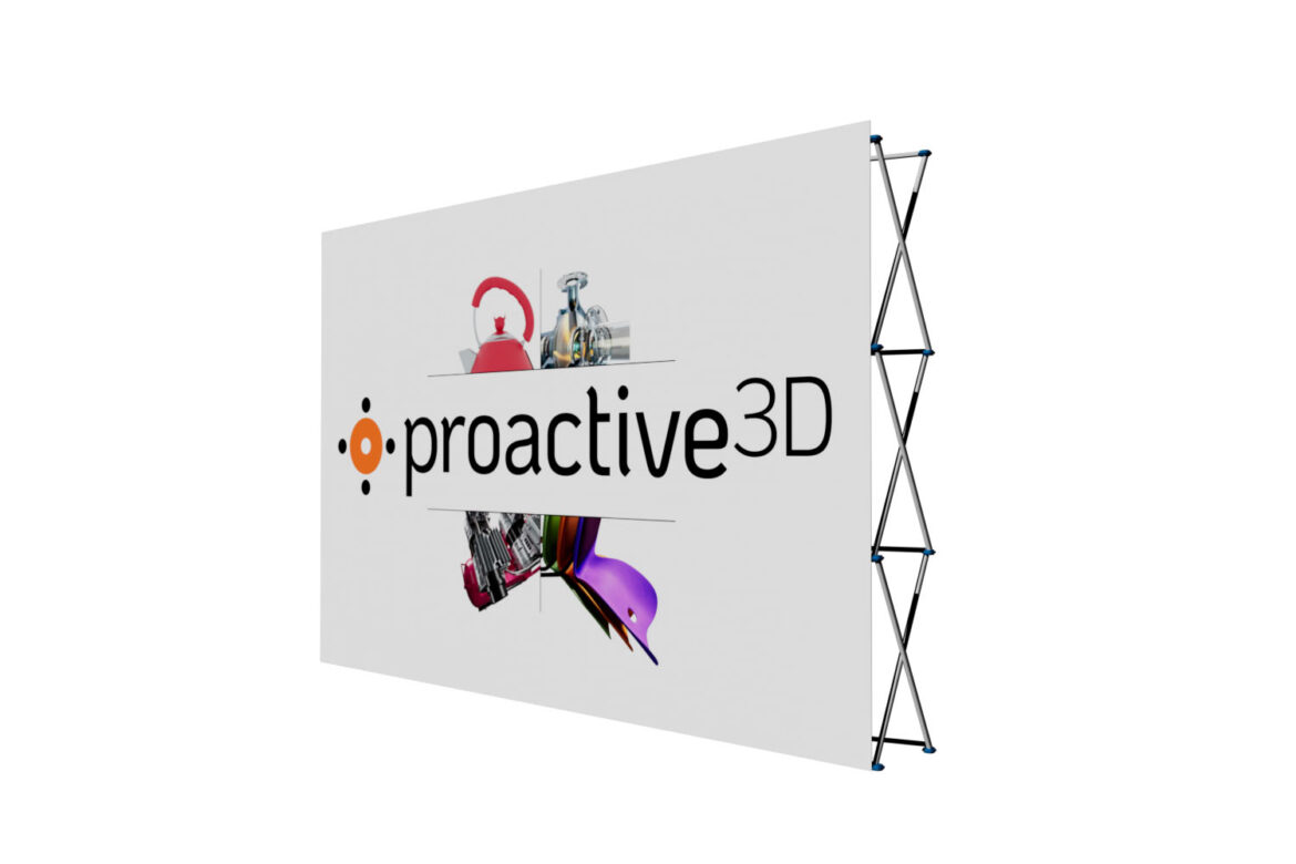Exhibition stand with foldable frame and magnet backed graphic panels. Click the picture to interact